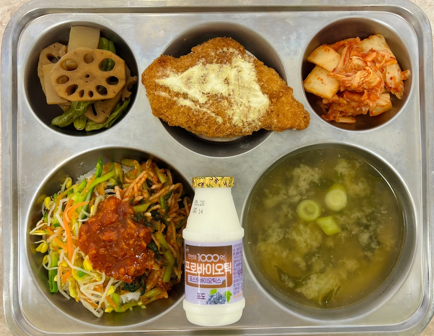 중식 : 찰보리열무비빔밥, 근대된장국, 대만식치파이, 연근곤약조림, 배추김치, 요구르트(포도)