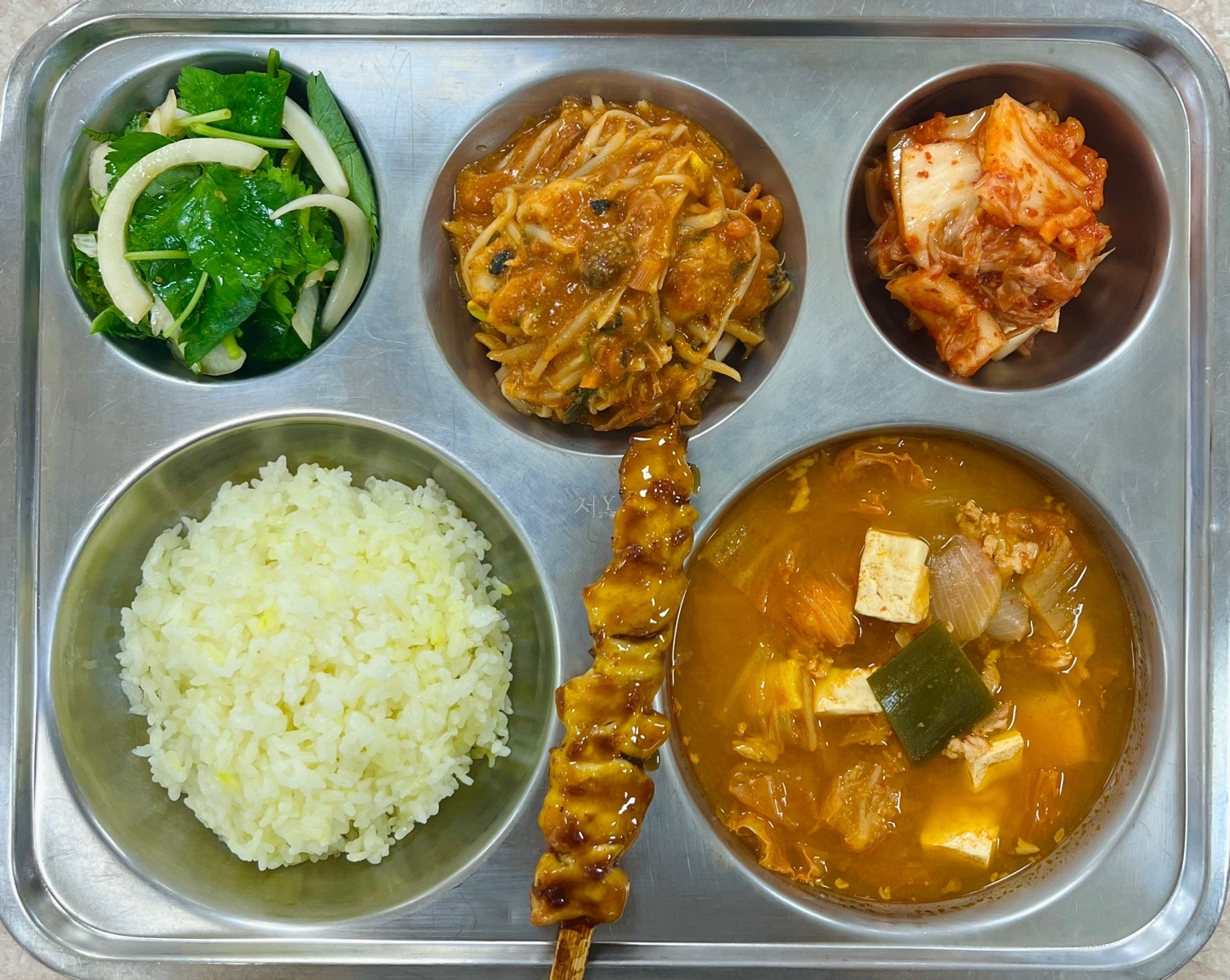 중식 : 강황밥, 돈육김치찌개, 아귀찜, 밥도둑킹콩꼬치, 참나물새콤무침, 배추김치