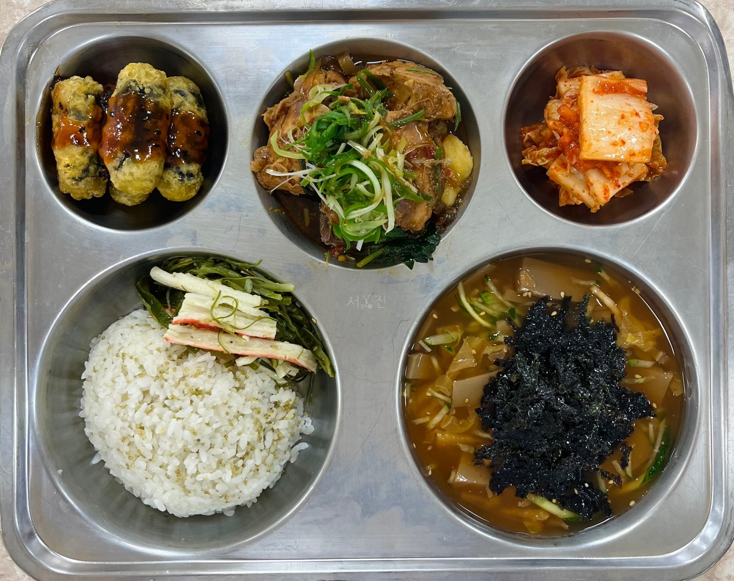 중식 : 찹쌀차조밥, 도토리묵냉국, 봉추찜닭, 김말이강정, 맛살미역줄기볶음