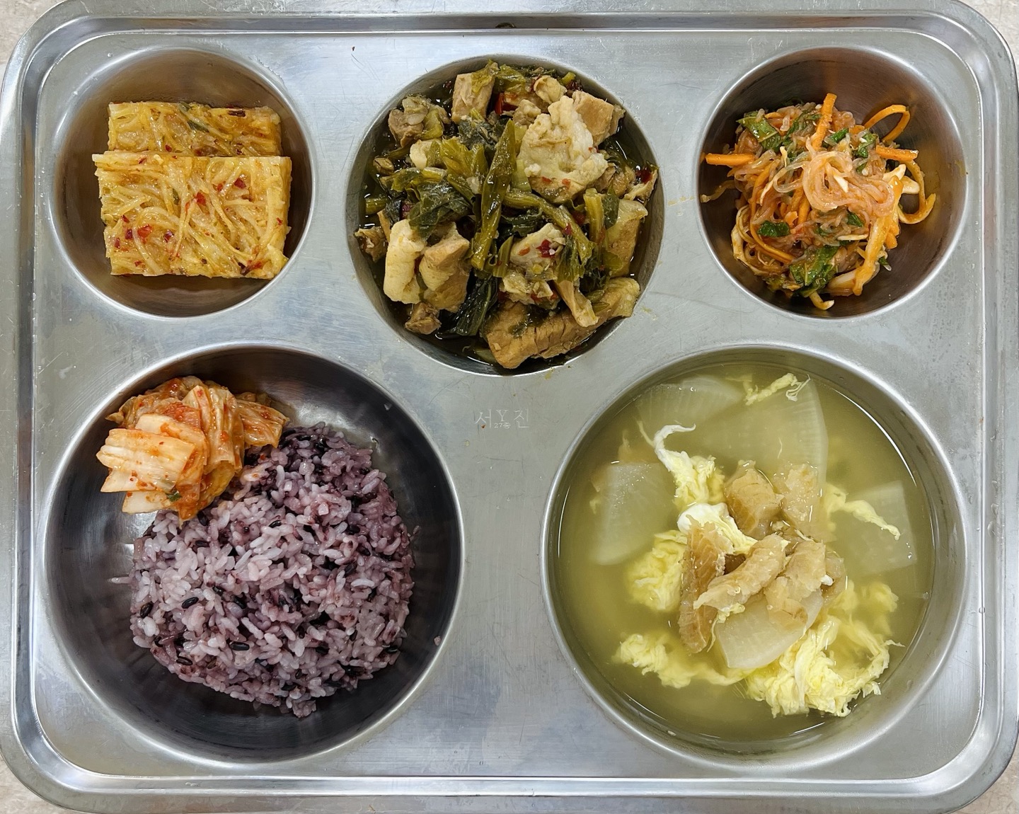 중식 : 찰흑미밥, 북어국, 시래기갈비찜, 오븐감자채전, 실곤약무침, 배추김치