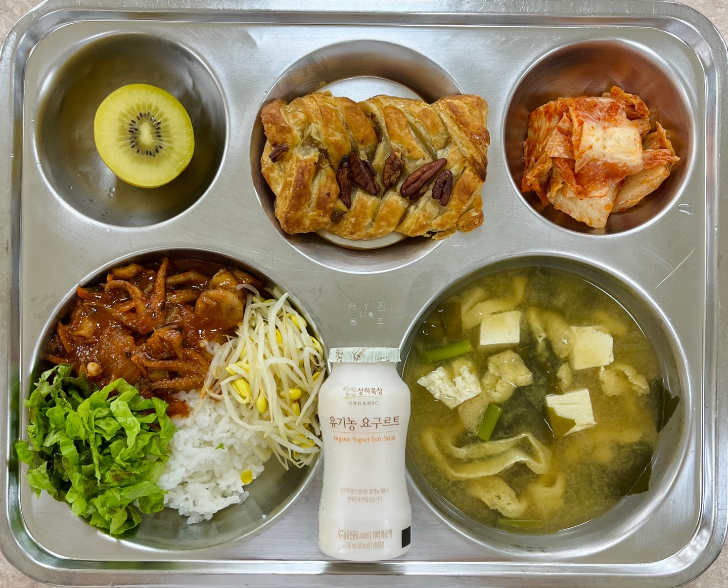 중식 : 숯불주꾸미비빔밥, 미소장국, 더커진 메이플피칸파이, 배추김치, 골드키위반쪽, 요구르트
