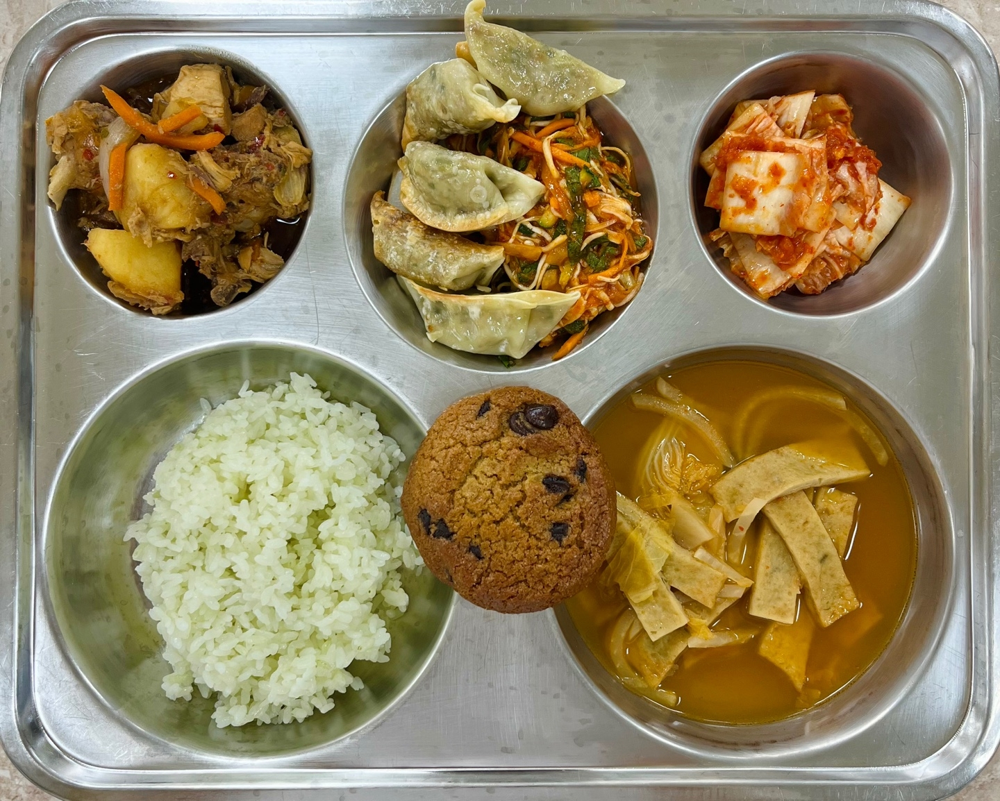 중식 : 클로렐라찹쌀밥, 김치어묵국, 안동찜닭, 비빔만두, 수제초코칩쿠키, 배추김치