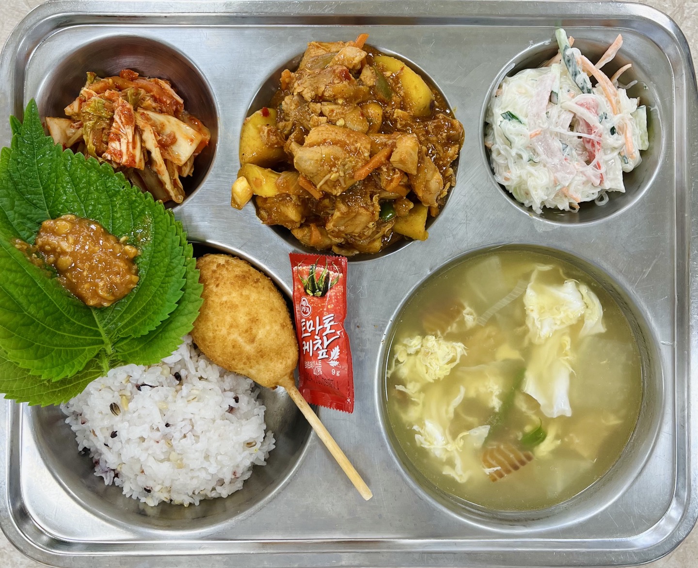중식 : 찰혼합잡곡밥, 북어국, 춘천닭갈비, 미니크리스피핫도그, 실곤약샐러드, 깻잎쌈/쌈장, 배추김치