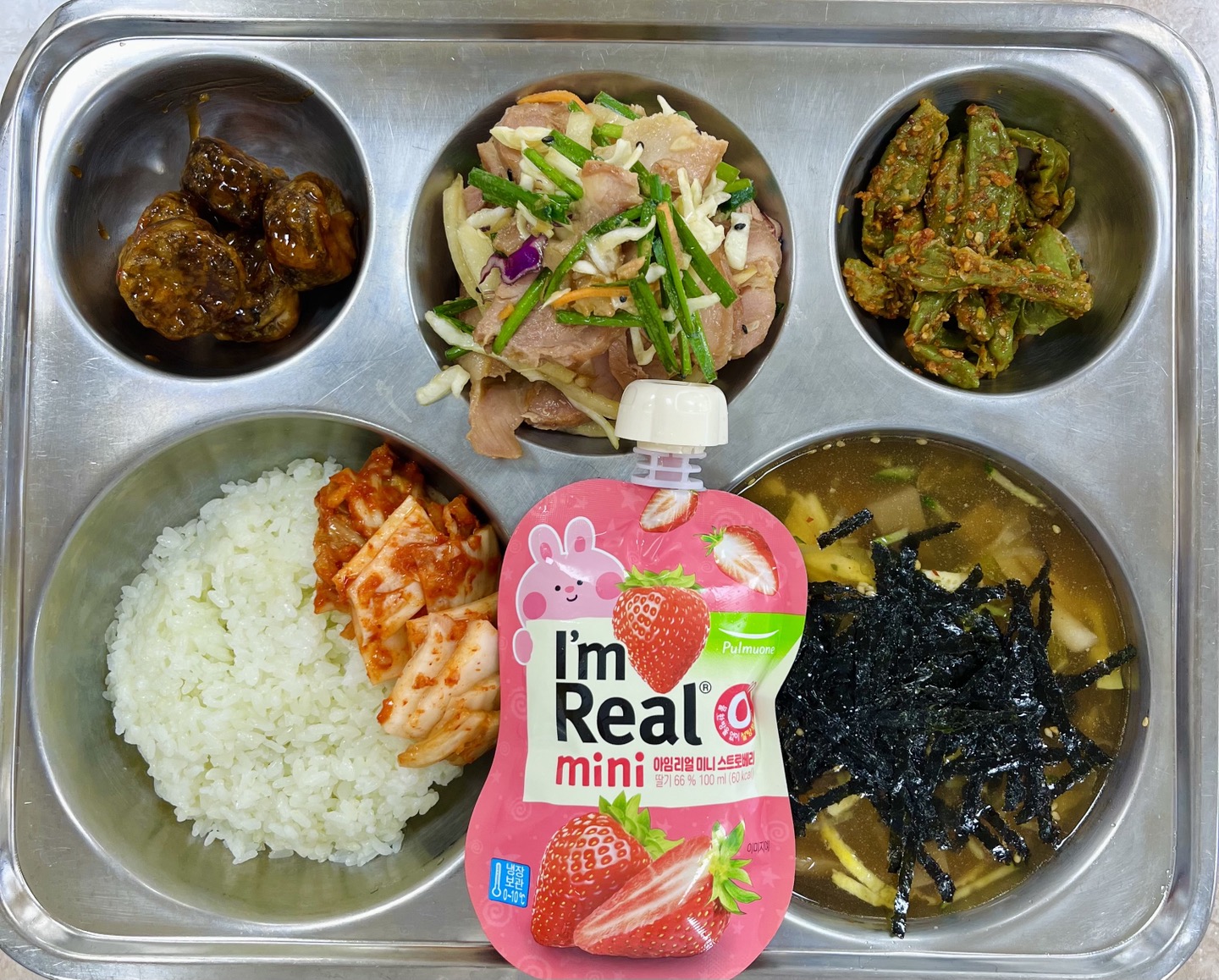 중식 : 클로렐라찹쌀밥, 도토리묵국, 훈제족살무침, 순대강정, 꽈리고추찜, 배추김치, 딸기주스