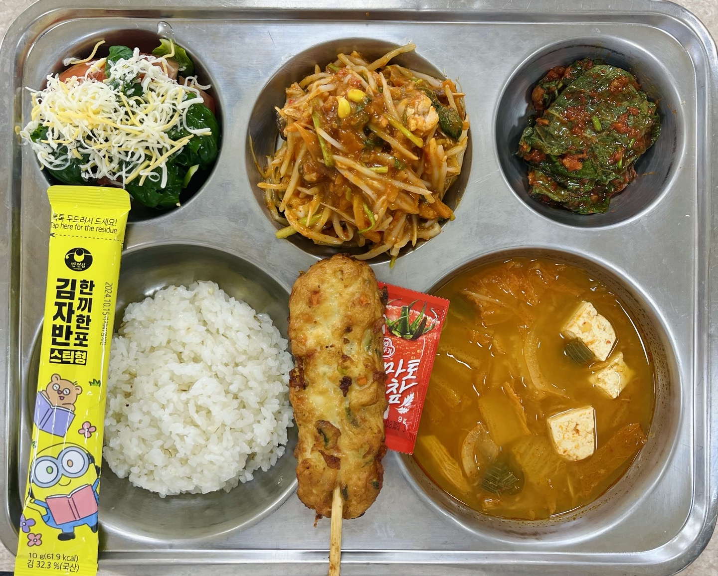 중식 : 찰보리밥, 참치김치찌개, 아귀찜, 오징어핫바, 꿀치즈토마토, 스틱김자반, 깻잎김치