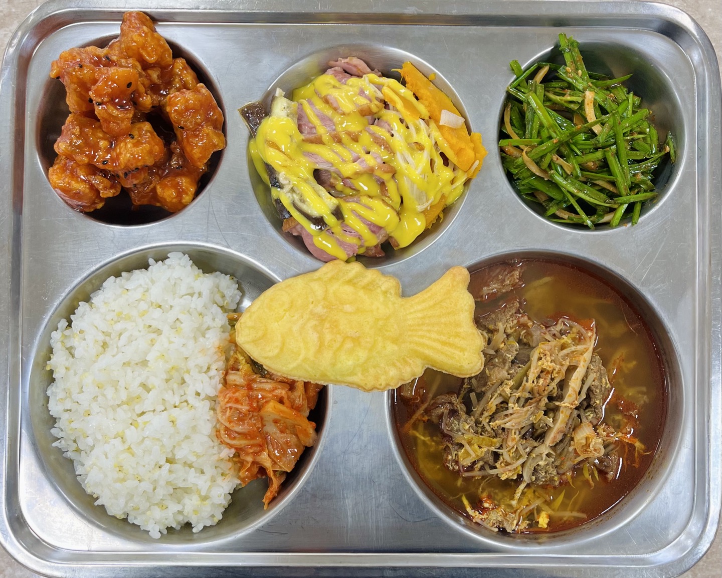 중식 : 찹쌀기장밥, 육개장, 오리훈제구이, 매운코다리살강정, 부추양파겉절이, 붕어빵, 배추김치