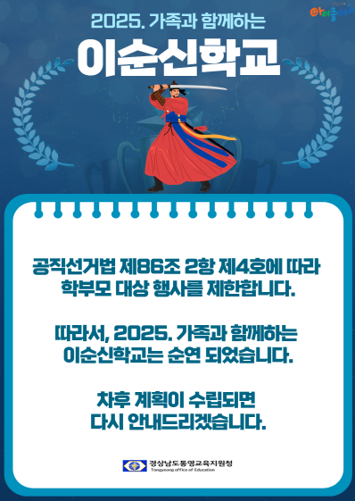 2025. 가족과 함께하는 이순신학교 행사 연기 안내