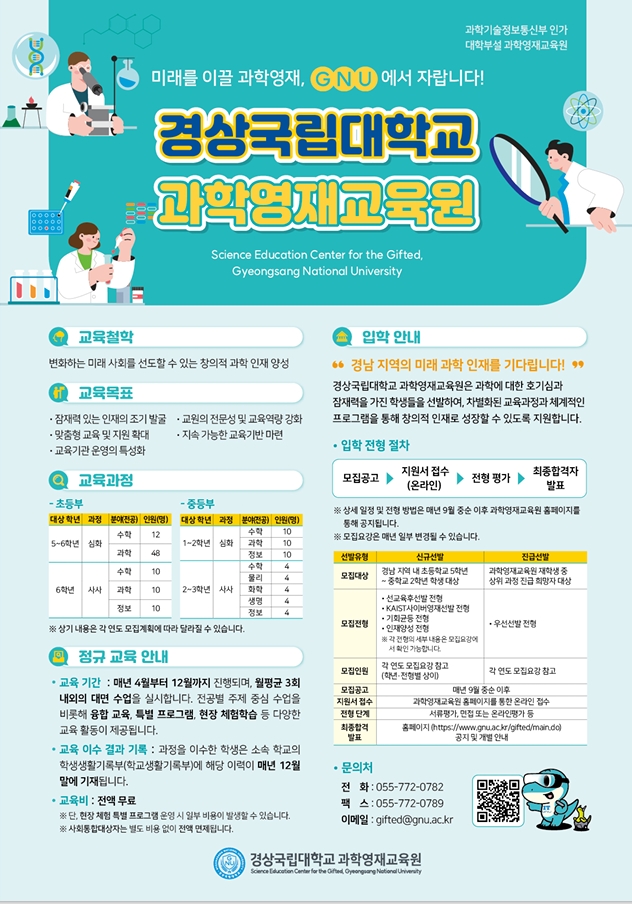 경상국립대학교 과학영재교육원 교육과정 안내